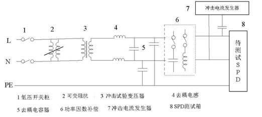 用于对150kA,波形8/20ms冲击电流动作负载试验交流电源反向滤波;